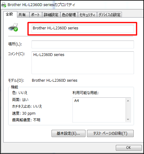 プリンタ名の確認・変更が出来ます。