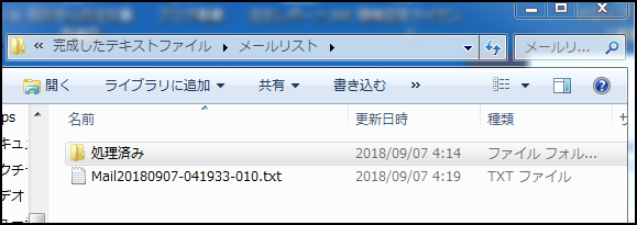 発送完了時に対象リストを「完成したテキストファイル」→「メールリスト」内に書き出し、