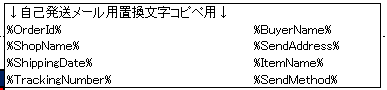 - 本文:%BuyerName%様~~~~%ShippingDate%に商品の出荷が~~~~