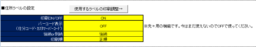 配送ラベルが不要の場合にはOFFに、