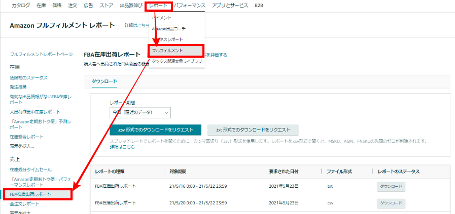 FBA在庫出荷レポートを用意する必要があります。