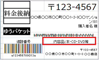 納品書、住所ラベルに印字される情報になります。
