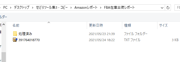 保存する際には、せどりツール集¥Amazonレポート¥FBA在庫出荷レポート内に保存してください。