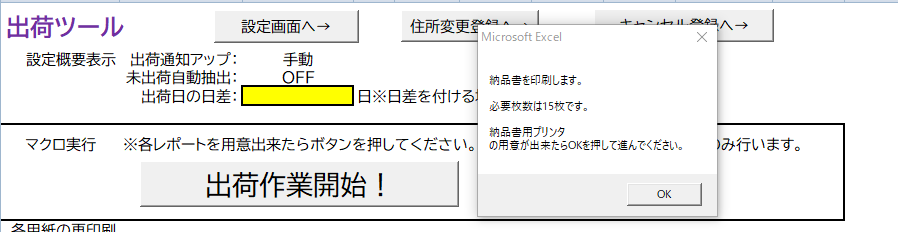毎日出荷作業をする場合は、毎回期間は「今日(直近のデータ)」で良いと思います。