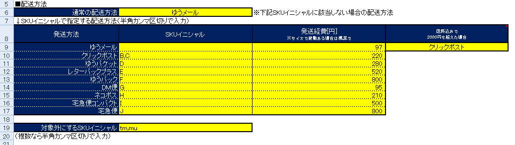 SKUイニシャルで配送方法を指定