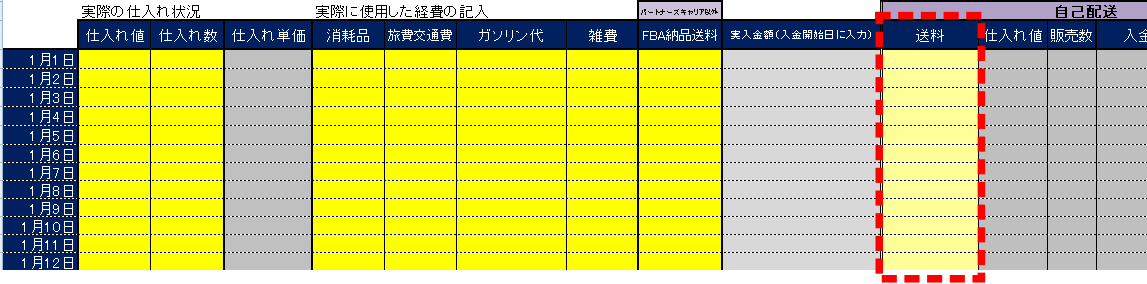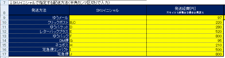 それぞれ発送経費も入力してください(利益計算で使います)