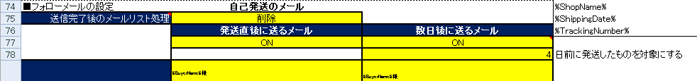 フォローメールの設定