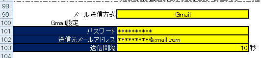 ⑤.ツールの設定画面にGoogleアカウントのユーザー名(メールアドレス)とアプリパスワードを設定する。