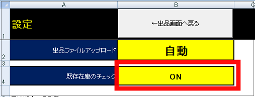 この機能を使う場合には、「既存在庫のチェック」をONにしてください。
